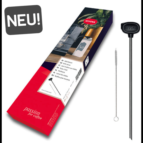 Piek rein, fein raus: Die NIVONA-Milchlanze ist die praktische Methode, um die Milch direkt an die NIVONA zu bekommen. Wie? Ganz einfach. Ohne zusätzlichen Schlauch oder Adapter. Und der Milchschlauch der NIVONA bleibt auch sauber. Dazu lässt sich die Milchlanze einfach regelmäßig mit Bürstchen und Seifenwasser reinigen.