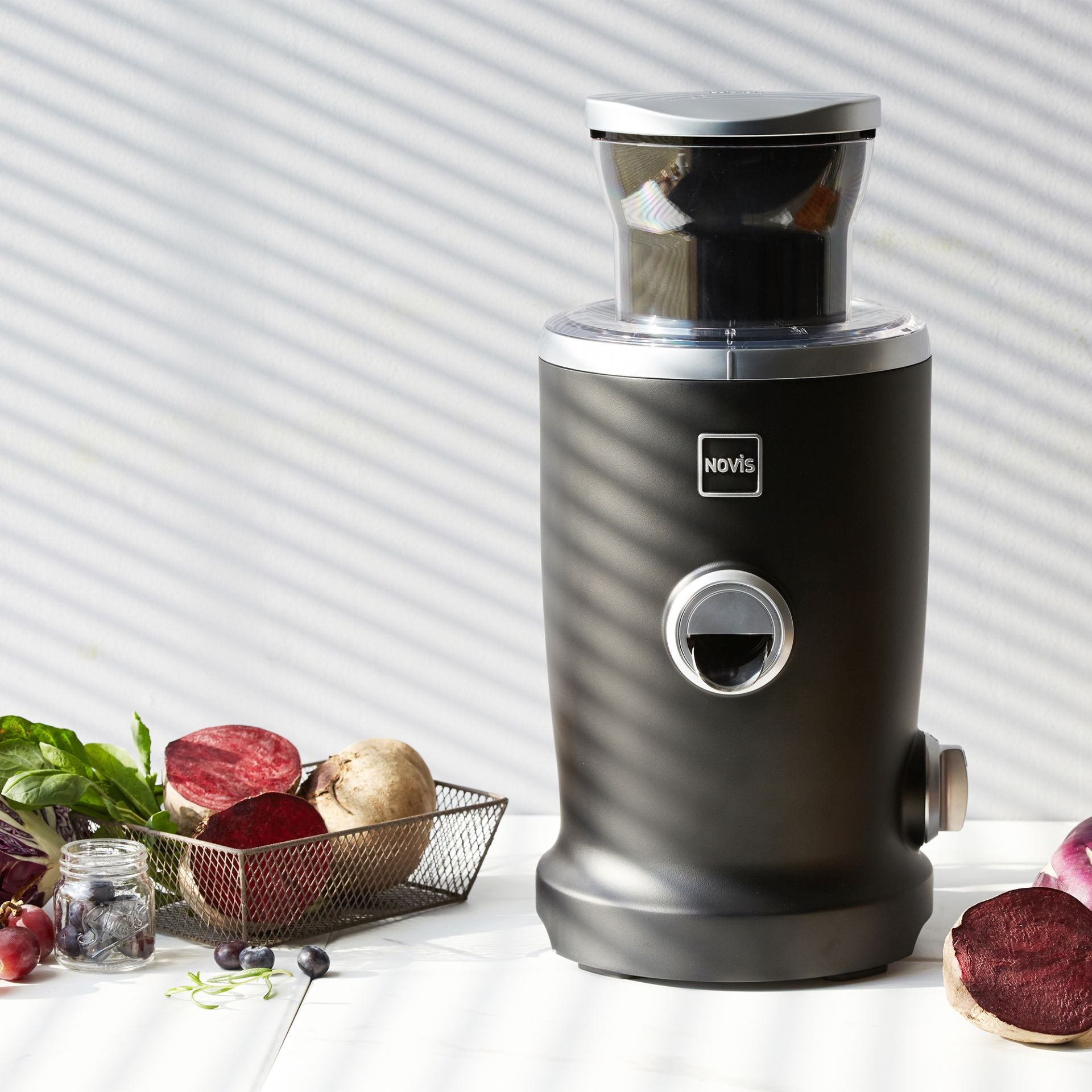 Mit den 4 Funktionen (VitaTec, Saftpresse, Zitruspresse, Pürier-Aufsatz), entsaftet der VitaJuicer alle Gemüse- und Obstsorten.Novis VitaTec